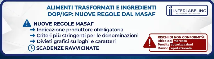 Le conseguenze non sono solo formali. Un'etichetta non conforme alle nuove disposizioni può comportare il ritiro del prodotto dal mercato, sanzioni amministrative e la perdita dell'autorizzazione a utilizzare il riferimento alla denominazione protetta. Le scadenze per l'adeguamento sono ravvicinate e chi opera con ingredienti DOP o IGP in prodotti trasformati deve rivedere sia la documentazione sia la veste grafica delle proprie etichette.
