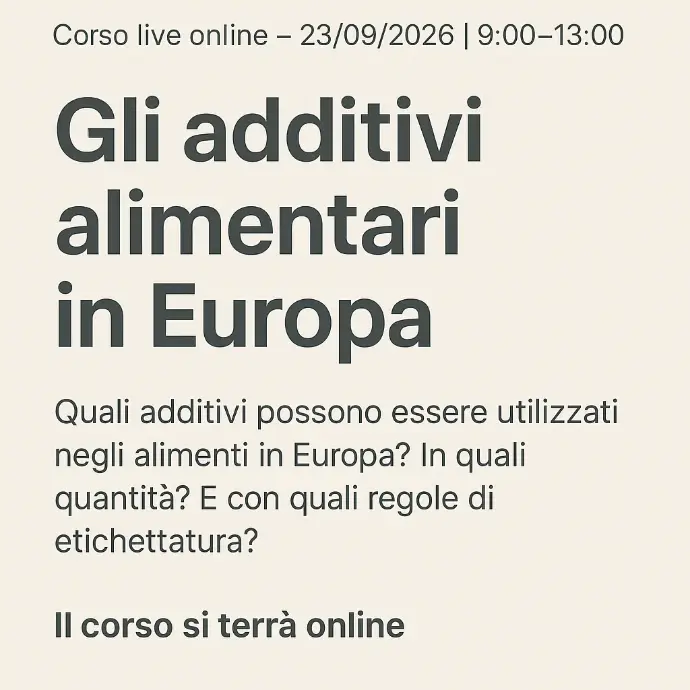 Questo corso fornisce una visione chiara e operativa del quadro europeo sugli additivi alimentari, con esempi pratici utili per affrontare controlli, audit e richieste commerciali.