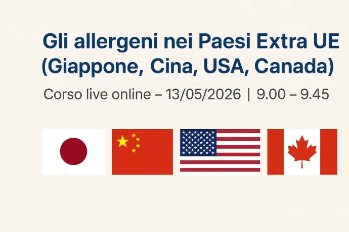 Il corso spiega in modo pratico come indicare gli allergeni in etichetta in Giappone, Cina, USA e Canada, evidenziando le differenze rispetto all’UE.